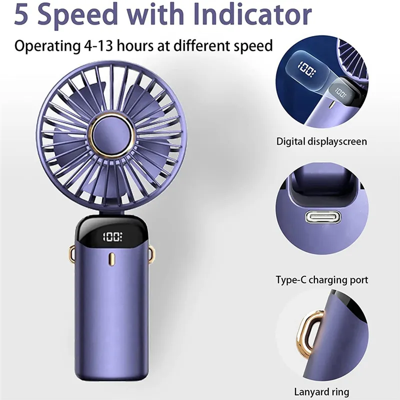 - 5 Speeds&Strong Airflow] Adopt 5 fan blades design, equipped with brushless motor, this handheld fan can generate strong airflow, cool you down in few seconds on hot days