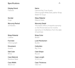 Warranty: This watch offers 24 months warranty on the Machine and 12 months warranty on the Battery from the date of purchase