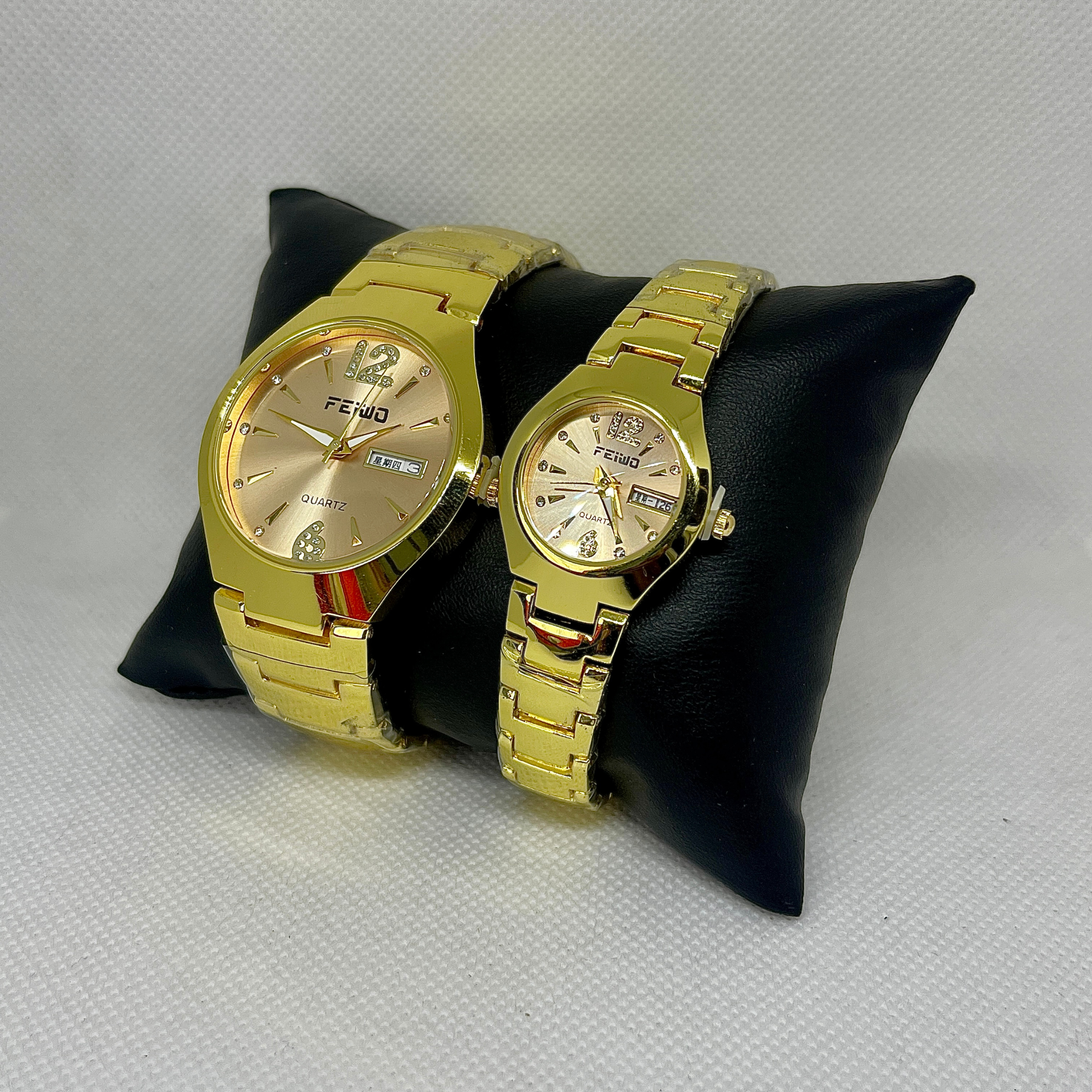Feiwo Golden Stainsles Steel  Couple Watch