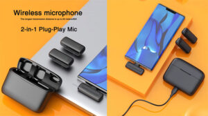 J13 Wireless Lavalier Microphone with Charging Case,Dual Lapel Microphone,Clip On Mic for iPhone Android