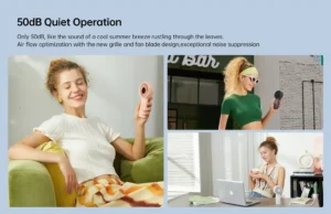 - Quiet Operation: Whisper-quiet motor for a peaceful cooling experience.