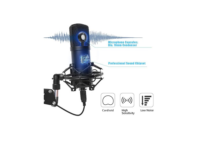 With the 16mm electric condenser transducer, the USB microphone can give you a strong bass response. This professional condenser microphone picks up crystal-clear audio. The magnet ring, on the MAONO AU-A04 Microphone cable, has a strong anti-interference function, which gives you a better feel.