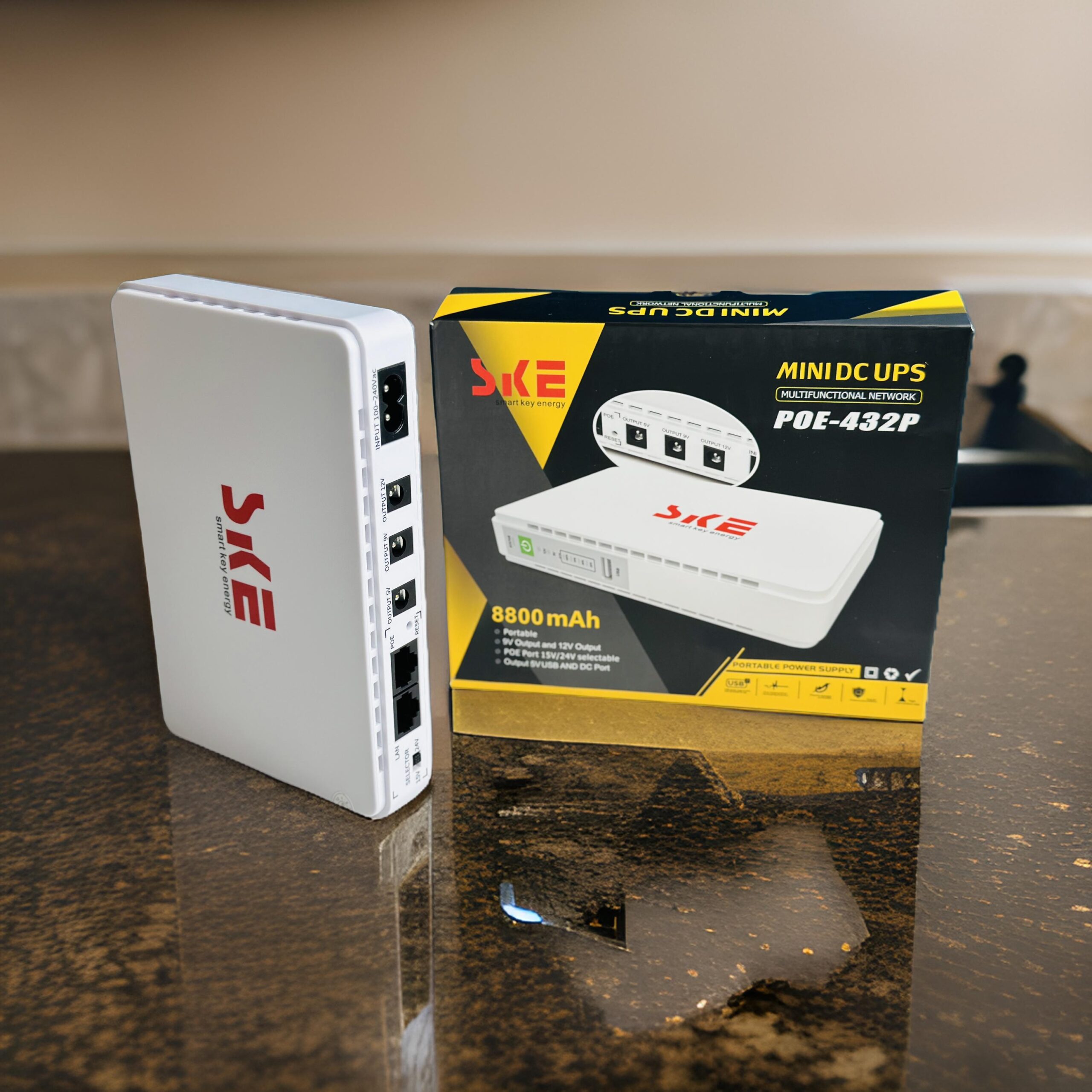 SKE presents a new version of the “PoE 432P Mini DC UPS,” which is a Power Over Ethernet-supported technology that lets network cables carry electrical power. This is a versatile mini uninterruptible power supply system that can provide you with Internet & Power power backup together in a single Cat6 wire with 15/24 volts. This UPS has reached a later advancement than any other traditional mini UPS.